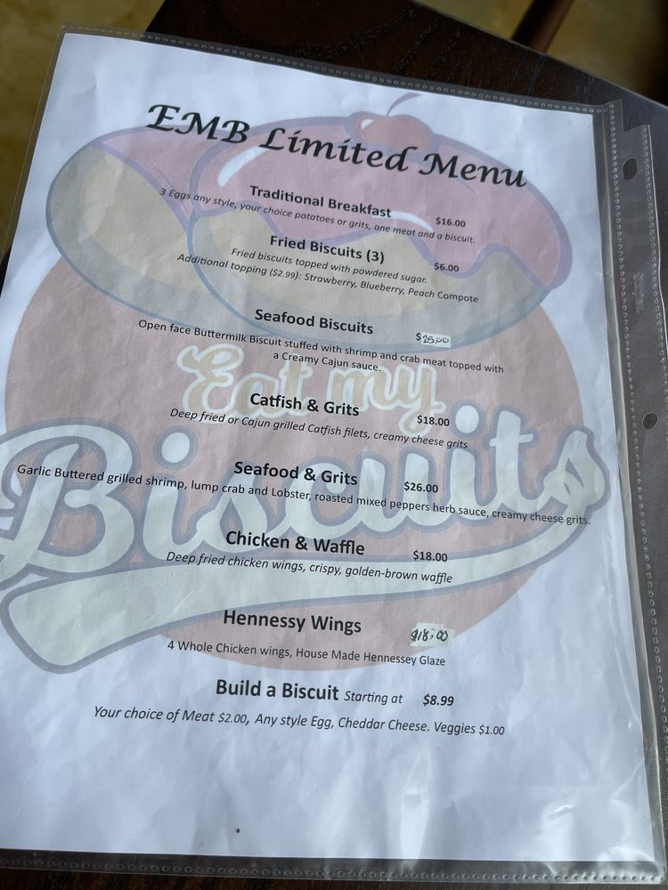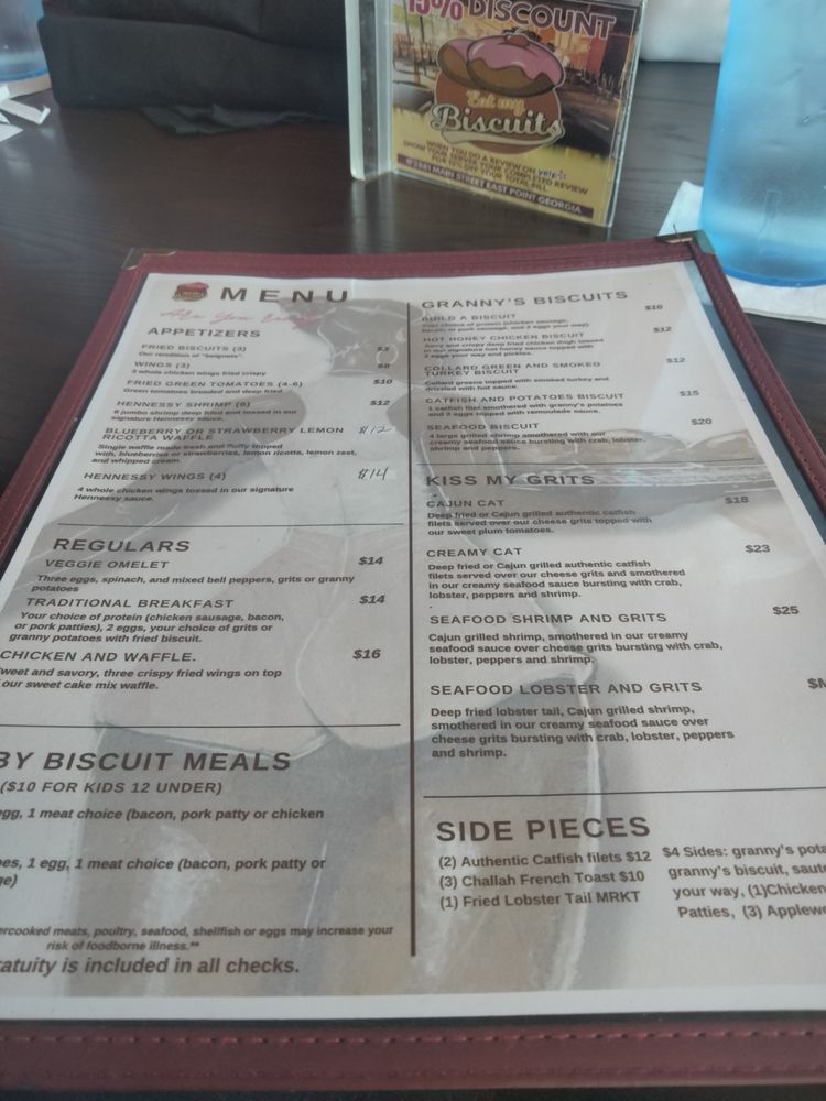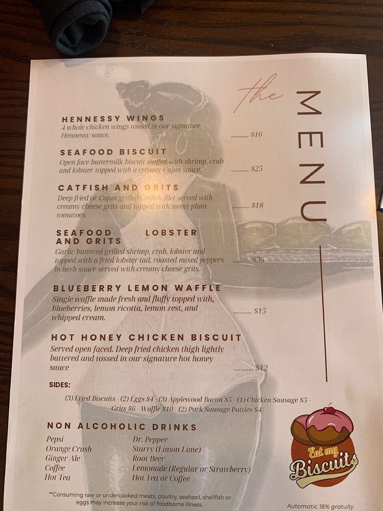Introducing Eat My Biscuits, a bustling breakfast and brunch hotspot located at 2881 Main St in East Point, GA. This trendy eatery offers a range of amenities such as reservation options, takeout, delivery, and vegan choices. With a welcoming atmosphere, generous portions, and a diverse menu, customers rave about the delectable dishes. Standout items include the hot honey chicken biscuit, seafood biscuit, and Hennessy shrimp. The bottomless mimosas on Wednesdays and Thursdays are a huge hit, along with creative cocktails like the Peach Margarita and Cinnamon Toast Crunch. Don't miss out on the Fried Biscuits and Hennessy Glazed Wings for a delicious start to your meal. With friendly service, clean facilities, and Instagram-worthy interior, Eat My Biscuits is a must-visit for anyone looking for a memorable dining experience in East Point.